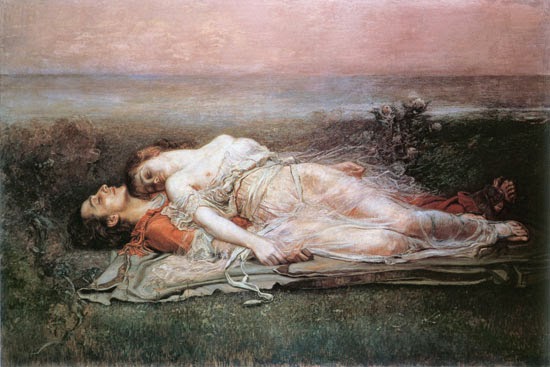 Hij voerde hun geliefde lichamen mee naar Tintagel. Bij een kapel, links en rechts van de absis, liet hij ze begraven. Maar in de nacht steeg uit het graf van Tristan een groene doornstruik op, met rijk gebladerte, met sterke takken en geurende bloemen, die zich boog over het dak van de kapel en nederdaalde in het graf van Isolde. De mannen uit het land sneden de doornstruik af; de volgende morgen groeit hij weer op, even groen, even bloeiend, even sterk, en weer dringt hij door tot in het graf van Isolde. Tot dire toe beproefden ze hem te vernietigen; het was te vergeefs. Eindelijk meldden ze het wonder aan koning Marc; de koning verbood voortaan de doornstruik af te snijden.