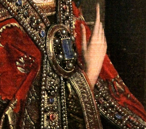 In Dürer's altaarstuk worden de leden van de familie Paumgarter op de voorgrond geknield afgebeeld als hele kleine figuurtjes.