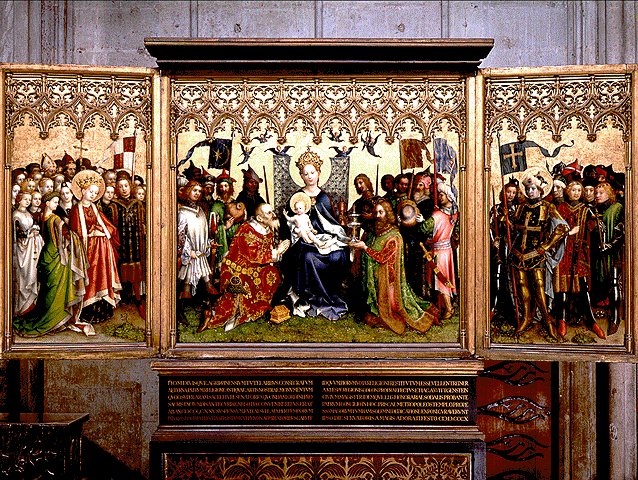 Het middenpaneel toont de Aanbidding van de Wijzen, terwijl op de beide zijpanelen de stadsheiligen van Keulen zijn weergeven: St. Ursula en St. Gereon. De manier van schilderen laat duidelijk zien dat er tussen Keulen en Vlaanderen kennis over schilderkunst is uitgewisseld. Ook kwam het voor dat er bestellingen werden geplaatst bij andere schilders dan de lokale schilders.
