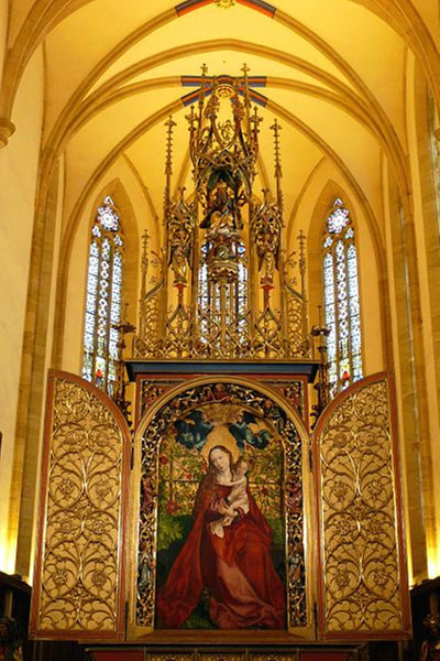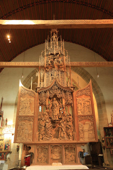 Het enorme werk toont onderin Maria's Hemelvaart, daarboven wordt zij gekroond als Koningin van de Hemel en bovenin staat een Lijdende Christus. De figuren zijn heel realistisch en tonen veel emotie. Aan dit altaarstuk hebben ook leerlingen gewerkt, maar de belangrijkste delen - de personages - zijn van de hand van Riemenschneider.