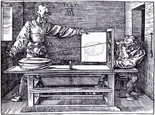 Albrecht Dürer heeft op zijn reizen in Italië inspiratie opgedaan om de werking van het perspectief in het platte vlak te onderzoeken en toe te passen. Hiervoor ontwierp hij een aantal instrumenten die hem in staat moesten stellen om op wetenschappelijke basis het perspectief te bestuderen.