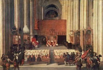 Een vergadering tijdens een van de zittingsperioden van het concilie van Trente
