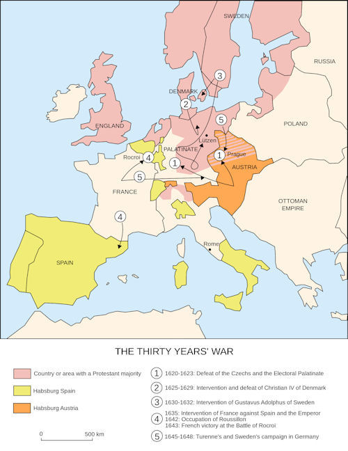 Dit was het begin van de Dertigjarige oorlog. De oorlog verliep bloedig. Tweederde van de Duitse bevolking werd uitgemoord. De strijd kende veel inmenging van buitenlandse mogendheden, waaronder de Nederlanden, Denemarken, Zweden en ook kardinaal de Richelieu die de protestanten steunde en de omklemming van de Habsburgers rond Frankrijk wilde doorbreken.