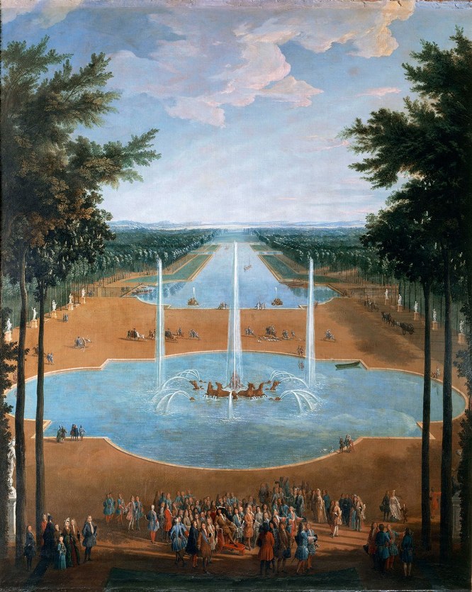 De Franse landschapsschilder Pierre Patel schilderde in 1668 de tuinen van Versailles in vogelvlucht. Het schilderij geeft een goed beeld van de enorme omvang van het complex met de tuinen.