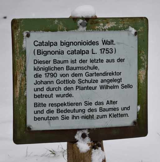 In het park werden verschillende solitair staande bomen aangeplant, waaronder een groene trompetboom. Deze boom, die in 1753 is aangeplant, groeit nog steeds in het park. Inmiddels kruipt de boom met zijn stam over de bodem. Een bord met de ouderdom van de boom moet bezoekers ervan weerhouden de boom als klimrek te gebruiken.