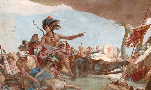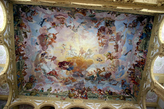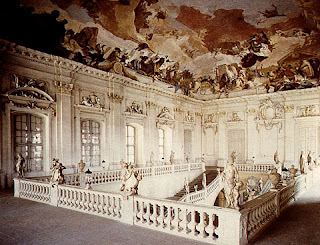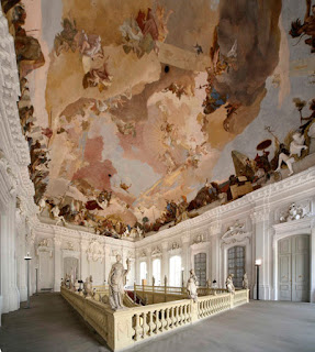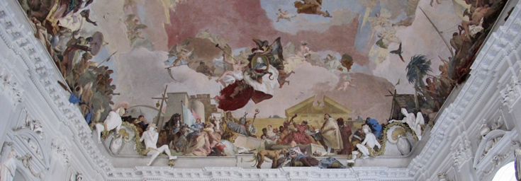 Gasten en genodigden kregen als ze de tweede dubbele trap beklommen een overweldigend beeld van Tiepolo's plafonschildering. Tegenover de trapopgang was de allegorie van Europa geschilderd, als bakermat van cultuur en beschaving.