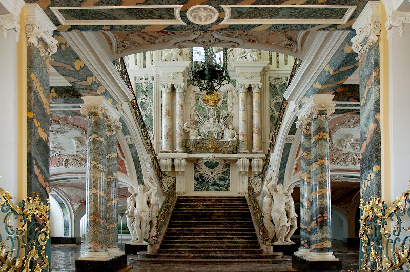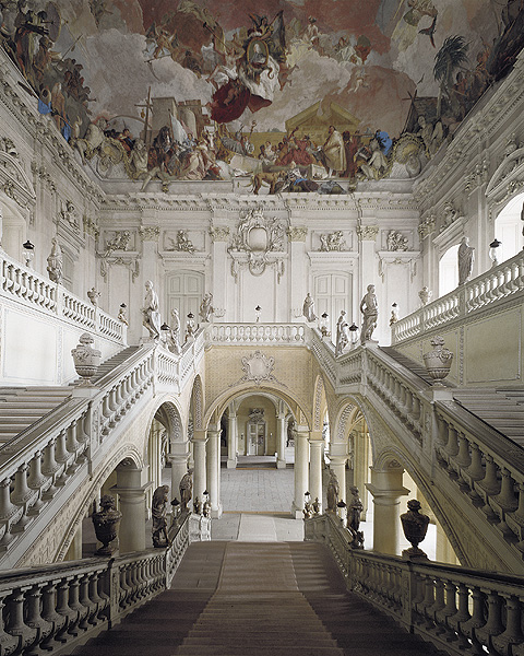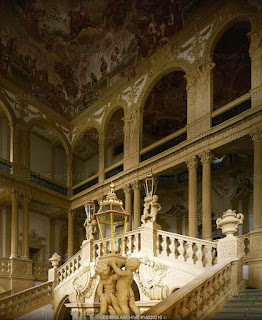 In een enorme hal was een inpandig trappenhuis gebouwd dat duidelijk de pracht en praal van de keurvorst uitstraalde. Het trappenhuis was apart gebouwd door Balthasar Neumann.