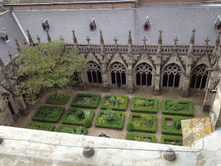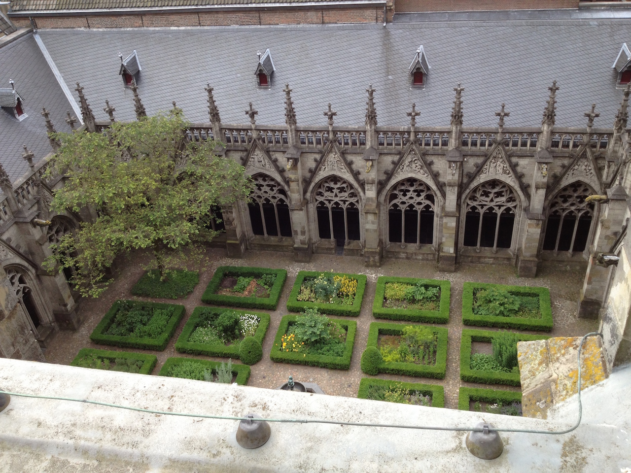 In het Pandhof van de Dom in Utrecht bevindt zich ook een kloostertuin met perken omringt door lage hagen.