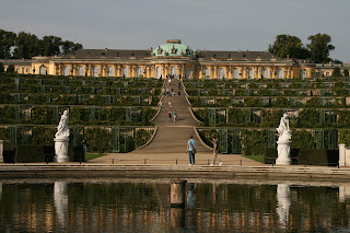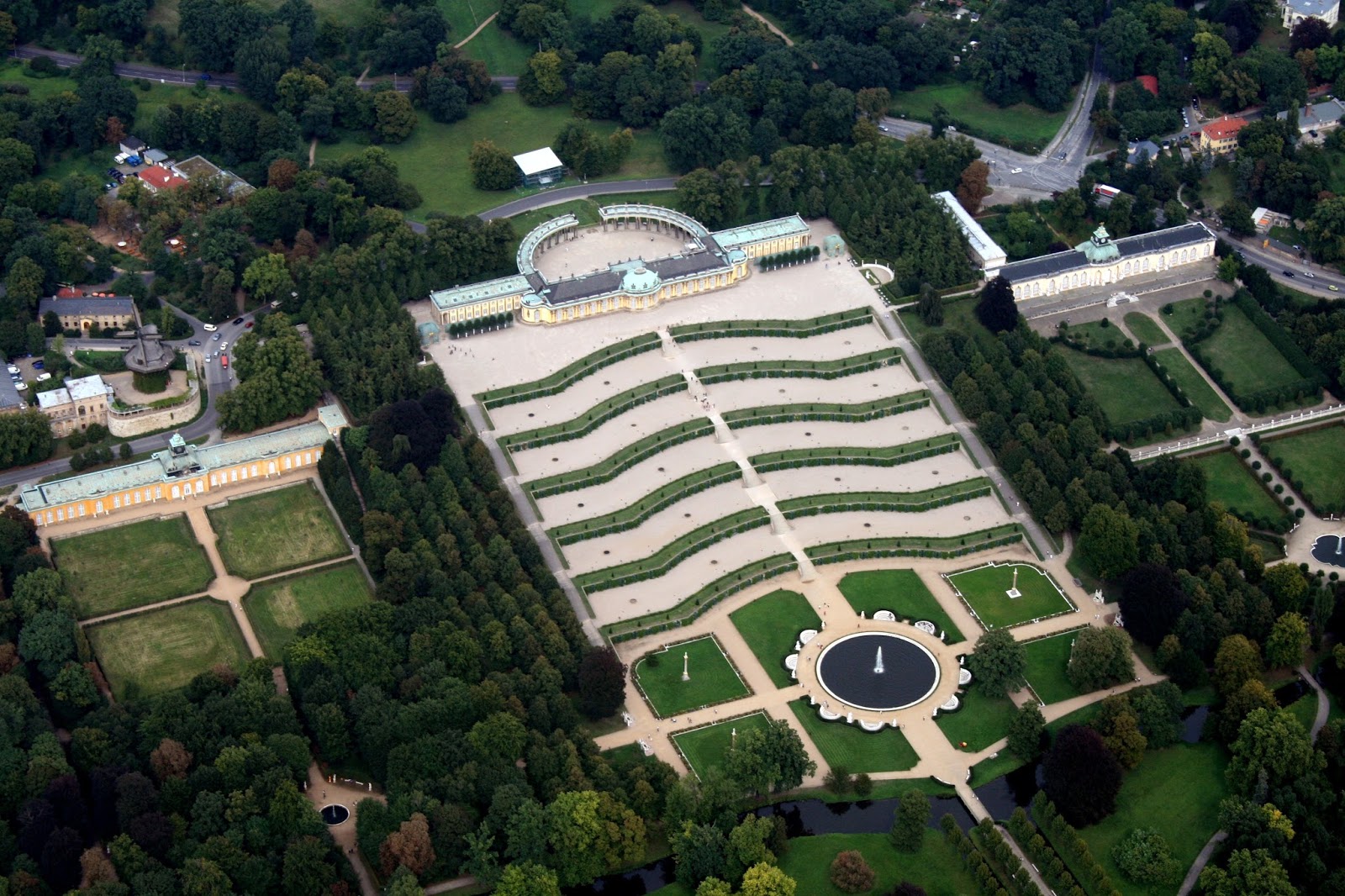 Ook Frederik II de Grote liet rondom zijn paleis Sanssouci in Potsdam een Engelse landschapstuin aanleggen met slingerpadden en follies. De wijngaardterrassen met het achterliggende park is nog in de barokke stijl.