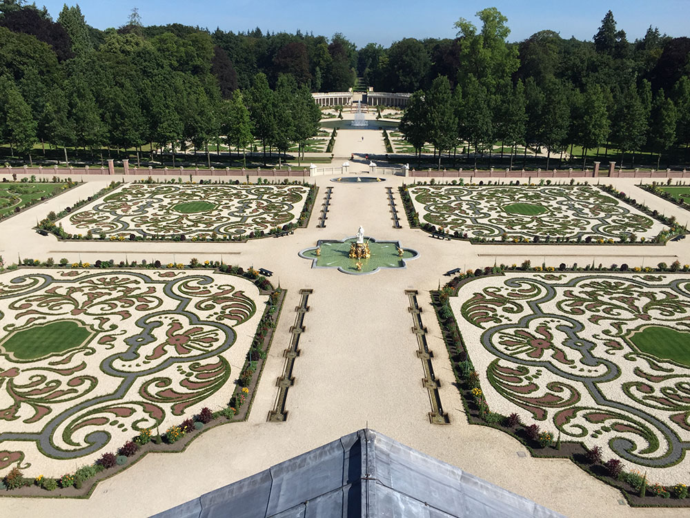De middenas van het paleis en de tuin was ontworpen met een waterstroom; een kopie van de Italiaanse tuinen. Belangrijk was eenheid, zowel in grote lijnen, als in de details.