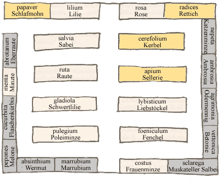 In de 9e eeuw ontwierp Wilfried Strabo, abt van het klooster van Reichenau een plan voor de inrichting van zijn kloostertuin. Hij legde de indeling van de verschillende perken vast in een manuscript "Hortulus", dat kan worden gezien als de basis vormde voor de ontwikkeling van de tuinarchitectuur.