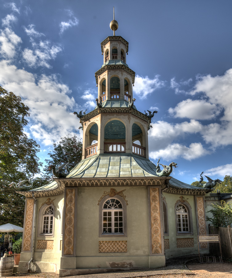 Frederik II de Grote liet in het park verschillende bijzondere paviljoens bouwen. Veel van deze gebouwen zijn in rococo stijl opgetrokken met veel goud en krullen.