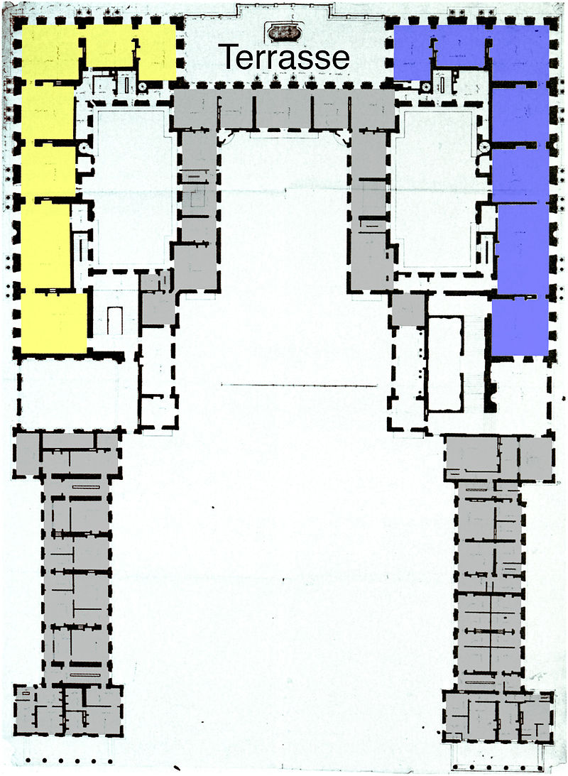 In de Republiek laat stadhouder-koning Willem III in Apeldoorn een jachtslot bouwen, dat we kennen als paleis het Loo. Duidelijk zijn de overeenkomsten met een hoofdgebouw in het midden, de vleugels en de paviljoens. De vertrekken van de stadhouder-koning bevonden zich links, die van koningin Mary rechts met beiden een eigen tuin.