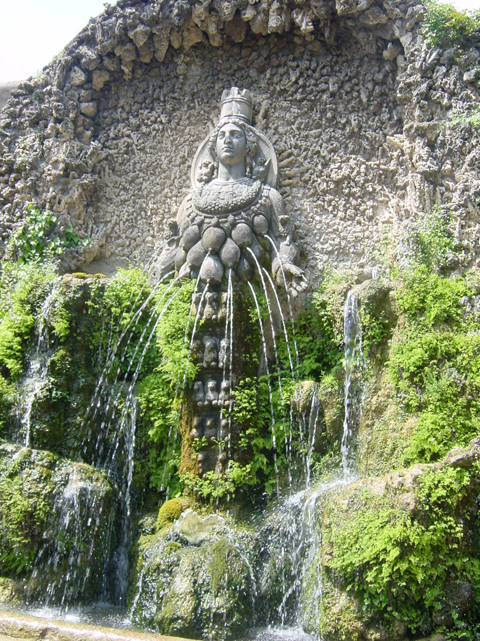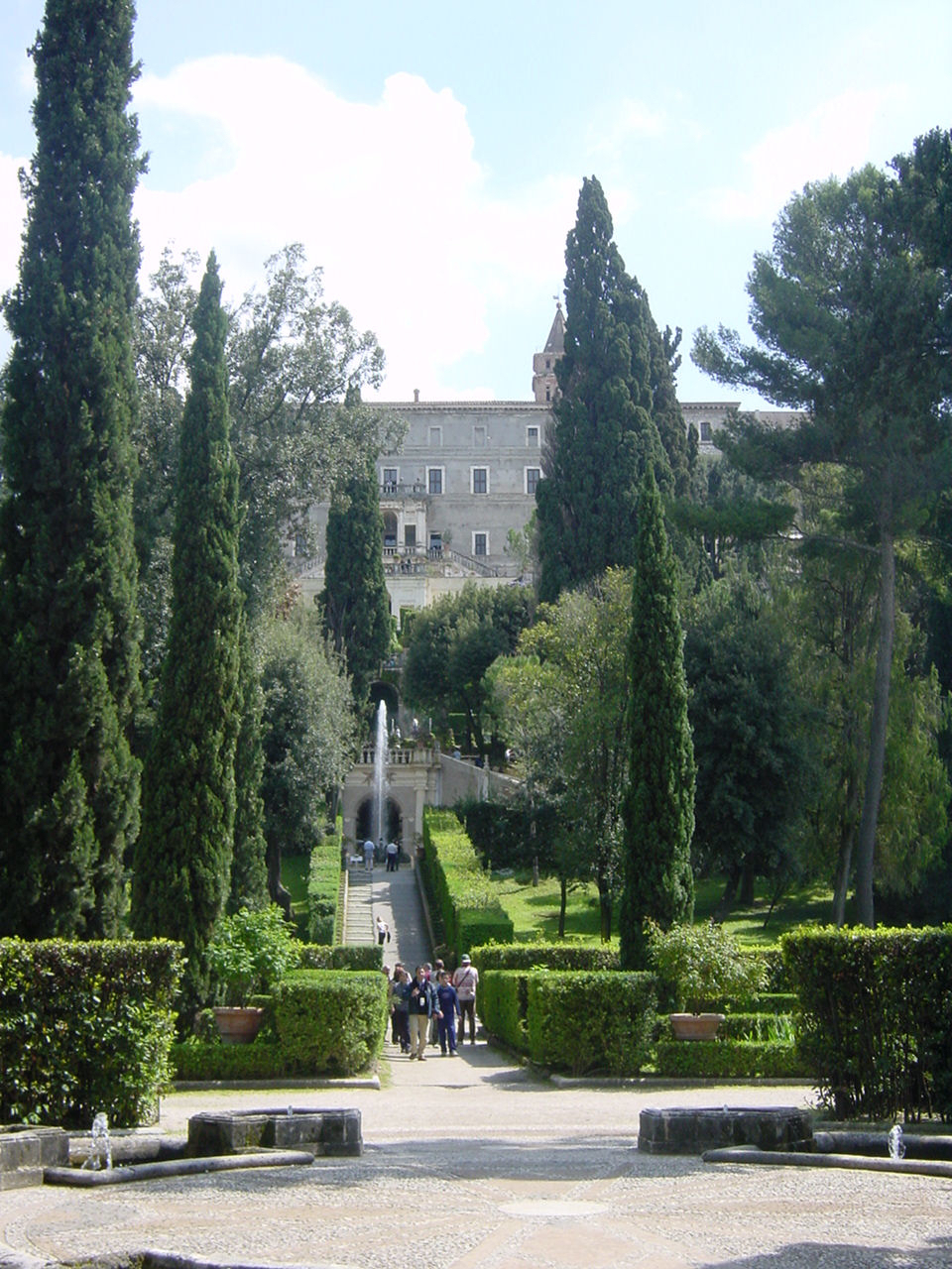 De tuin van de Villa d'Este is een voorbeeld van een Renaissance tuin. Vanaf het paleis op de heuvel werd een lange rechte lijn geprojecteerd, waarlangs de verschillende indelingen van de tuin werd gerealiseerd. Een riviertje werd omgelegd, zodat de tuin kon worden voorzien van verschillende imposante waterpartijen. Dit kon door gebruik te maken van de hoogteverschillen in het landschap. De verschillende aanplant had een symbolisch betekenis, zoals de verschillende doolhoven die model stonden voor de levensweg.