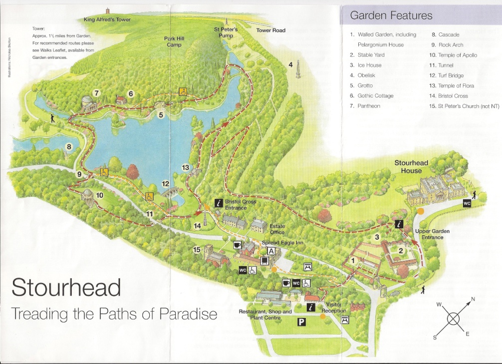 Voor Stowe gardens in Buckinghamshire ontwierp Lancelot Brown de aanleg. Ook hier wordt de suggestie gewekt van een arcadisch landschap met slingerpaden. Een overzicht van het park, zoals in de Barokke tuinen is voor de wandelaar onmogelijk.