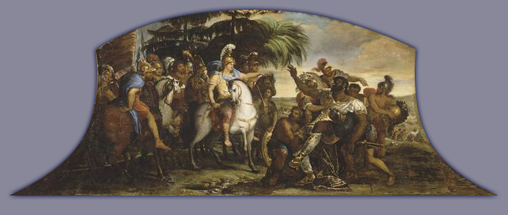 Op het plafond zijn alle succesvolle daden van de koning geschilderd.