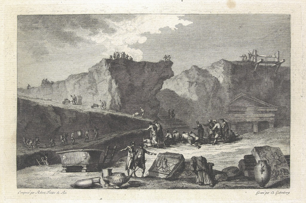 Al in het begin van de 18e eeuw worden er op de plaats waar ooit Pompeii en Herculaneum hadden gelegen marmeren beelden opgegraven. Halverwege de 18e eeuw is het koning Karel III van Spanje die met grote ijver de keihard vulkanische grond met gebruik van springstof open te breken. Hij laat alle vondsten overbrengen naar Madrid. Naast beelden en gebruiksvoorwerpen komen ook de eerste fresco's te voorschijn. Deze vormen een inspiratie voor talloze kunstenaars, maar ook de opgravingen zelf bieden kunstenaars mogelijkheden om de oude klassieke tijd te laten herleven.