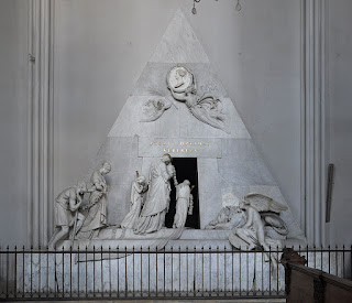 Maar ook in de beeldhouwkunst komen we die intrigerende emotie tegen, als we voor het grafmonument staan van Maria Christina van Oostenrijk. De deur van het graf staat open. Er loopt een processie rouwenden naar binnen en wij gaan als het ware met hen mee.