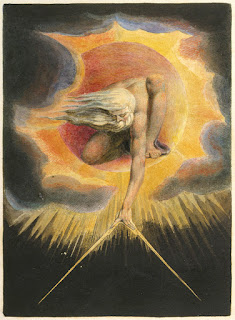 In Engeland is het William Blake die de figuur van God de Vader uitbeeldt met een passer. Blake schreef een boek over de schepping met een eigen mythologie en in een non-conformistische stijl. De uitbeelding van de godsfiguur lijkt uit de antieke wereld te komen (Zeus), maar het Renaissancistisch geschilderde naakt doet denken aan Michelangelo. De godsfiguur is de belichaming van Rede en Recht.
