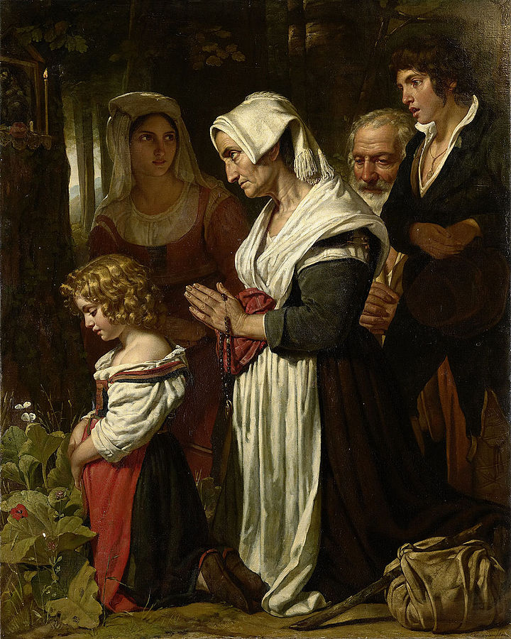 Een ander schilderij van Cornelis Kruseman vestigt ook de aandacht op het geloof van het individu. Kruseman studeert in Rome en heeft de centrale figuur in Rome in de St.Pieter zien knielen en bidden. Hij vraagt haar model te staan voor het schilderij Godsvrucht, maar in plaats van in een kerkgebouw laat hij de figuren biddend zien midden in een bos, in de natuur. Ook hier zien we de invloed van schilders als Rafael en Leonardo da Vinci.