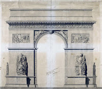 Tijdens het keizerrijk had Napoleon opdracht gegeven om midden in Parijs een enorm triomfboog te bouwen, als herinnering aan zijn overwinningen. Hier zien we weer het teruggrijpen op de klassieke oudheid. In het oude Rome bouwde de keizers ook triomfbogen met reliefs om hun overwinningen te vieren. De bouw begon in 1806, maar werd in 1811 stilgelegd door de dood van Chalgrin en de teloorgang van Napoleons populariteit. Het bouwwerk stond in 1811 nog maar 10 meter boven de bouwplaats. De bouw werd hervat in 1830 onder koning Louis-Philippe en in 1836 voltooid.