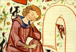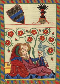 Het woord 'minnezanger' komt van 'mene strel' = rondtrekkende zanger. Minnezangers trokken rond van hof tot hof en schreven hoofse liederen, soms in opdracht van een heer.