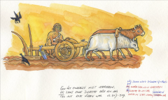 Als ze een veld oprijden waar een ploeg staat, stijgt de koning snel af en neemt het ploegijzer mee. Het lijkt hem geschikt voor zijn werk, want wie een burg wil binnendringen, moet zorgen dat hij de nodige gereedschappen heeft.