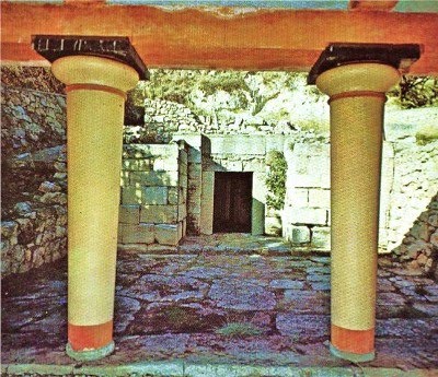 Evans reconstrueerde een deel van de paleisgebouwen op Knossos. Gebruikte