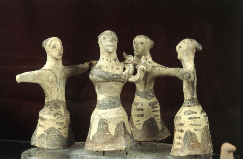 geiten en elegant geklede godinnen die mogelijk verwijzen naar de matriarchale Minoïsche