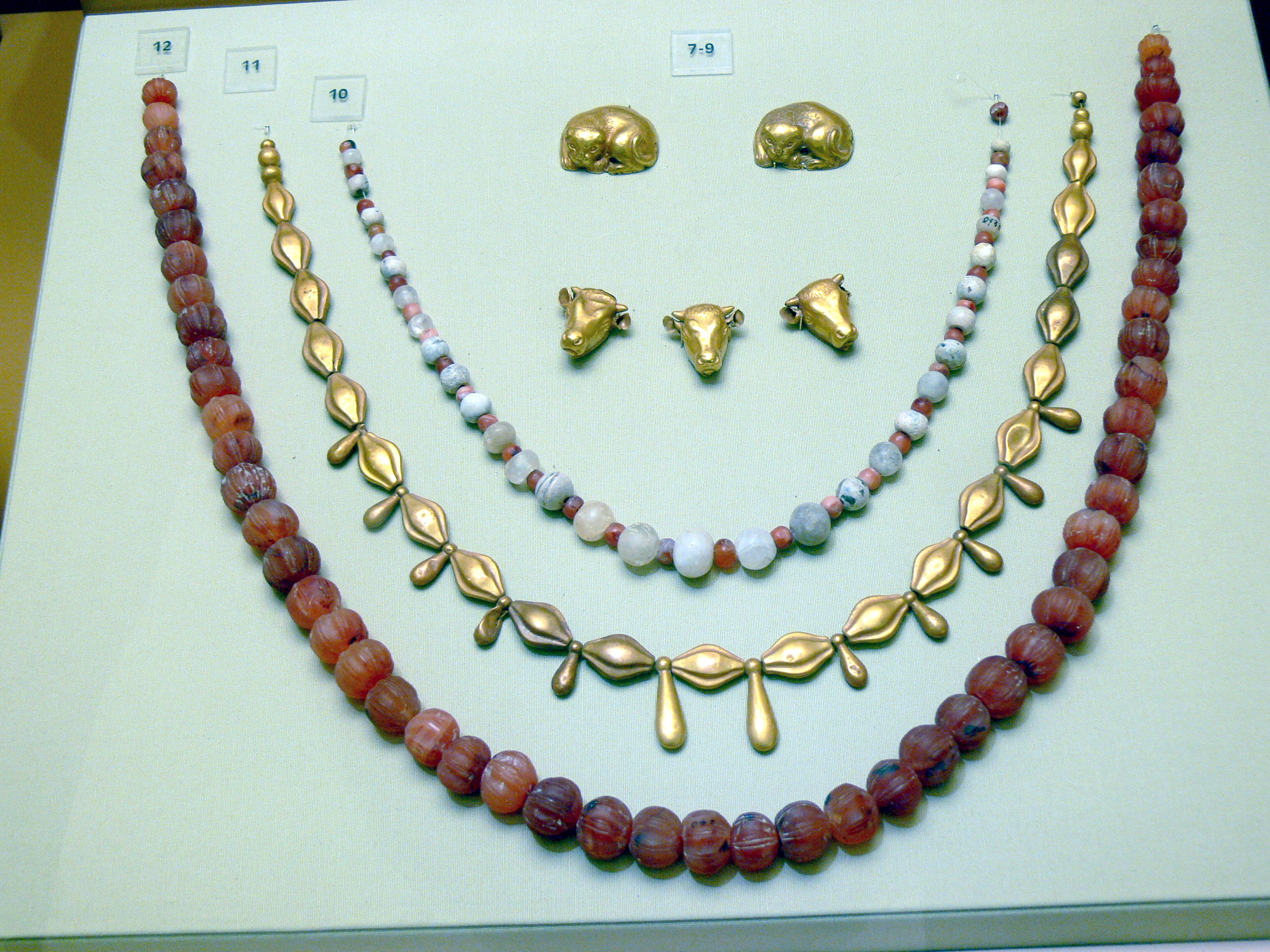 In de grafheuvel werd diverse grafvondsten ontdekt die een beeld geven van de rijke Myceense cultuur