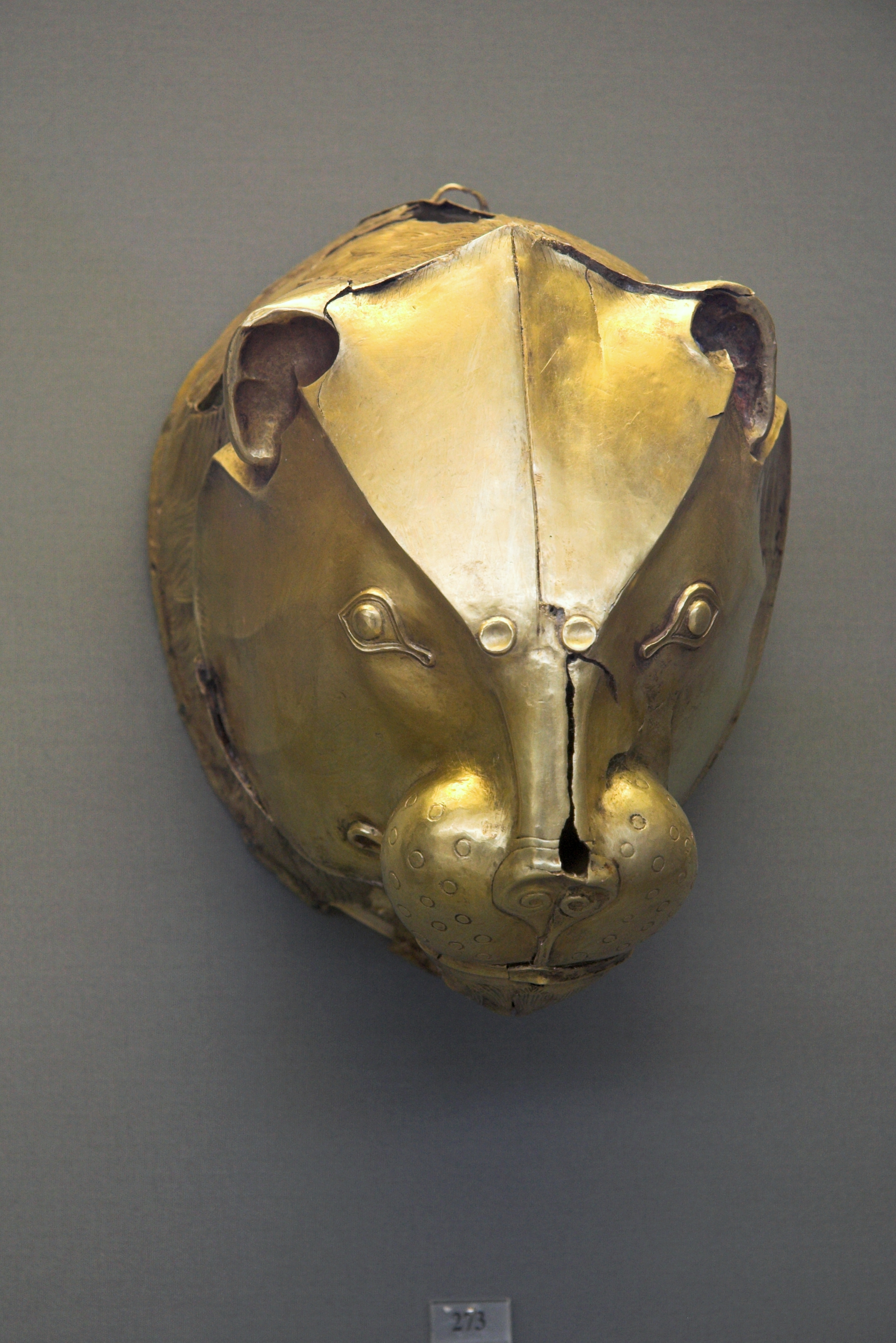 Schlieman groeft in bij Mycene dit gouden masker op. Volgens hem was het het dodenmasker van Agamemnon. De Trojaanse oorlog vond - volgens Homerus - op een veel eerder tijdstip plaats. Ook diverse andere vondsten van Schlieman werden door hem toegeschreven aan de Griekse mythologie o.a. van het huis van Atreus.