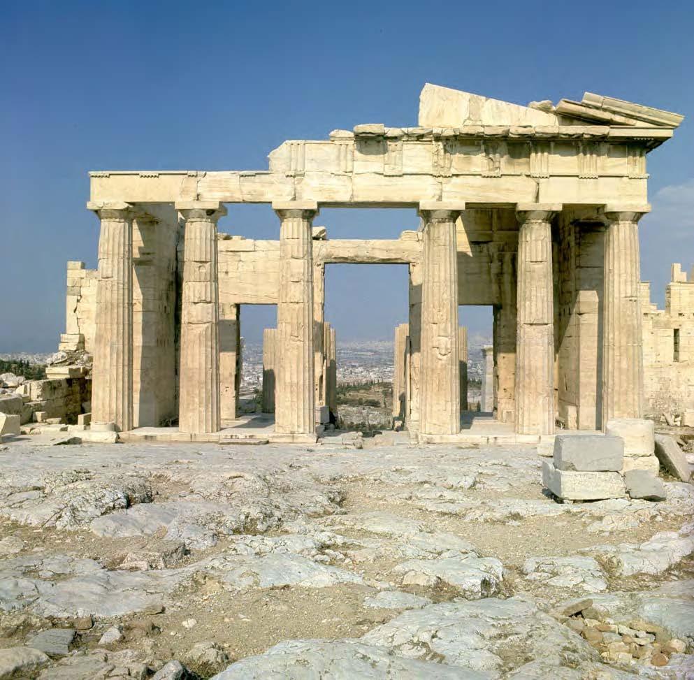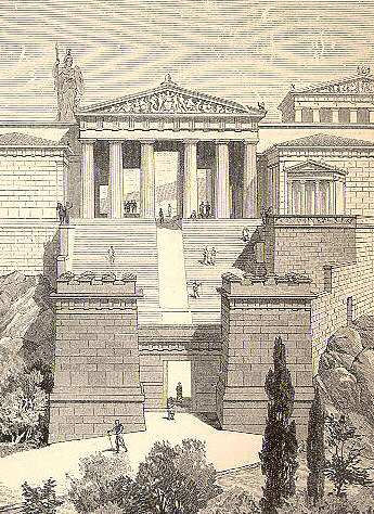 De Propyleeën zijn de toegangsgebouwen tot het plateau van de Acropolis. Ze