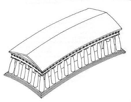 Aan de rand van het Griekse rijk is bij Labraunda in Anatolië een gebouw voor symposia (samenkomsten) gevonden, waarbij de ruimte niet meer gebouwd wordt als de naos en de pronaos, maar gebruik gemaakt wordt van de rondboog. In deze gewelfde ruimte kunnen meer mensen samenkomen. De Romeinen gaan de rondboog en het daaruit voortvloeiende tongewelf optimaal toepassen. Eerst in grafkelder, later ook in bovengrondse gebouwen.