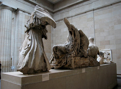 Veel van de resten van de beeldhouwwerken van het Parthenon bevinden zich in het British Museum in Londen. In de 19e eeuw ging Lord Elgin een kijkje nemen op de Acropolis en vond daar de resten van beeldhouwwerken van de metopen, de fries van de cellawand en het westelijk en oostelijk pediment(=timpaan). Lord Elgin voerde overleg met de Osmanen en kocht het recht om deze beeldhouwwerken te verzamelen en naar Londen over te brengen tegen betaling van een overeenkomen som gelds. Nadat Griekenland een zelfstandige natie was geworden en de regering inzag dat deze beelden een deel zijn het Griekse culturele erfgoed is er overleg met verschillende musea om deze Parthenon beeldhouwwerken over te brengen naar het nieuwe Acropolis Museum in Athena. Deze onderhandelingen hebben tot nu toe niet tot resultaten geleid.