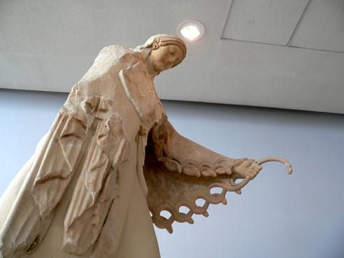 In 480 v.Chr hadden de Perzen – na de overwinning op de Atheners – op de Acropolis alles kort en klein geslagen. De beelden waren ontzield en de Atheners begroeven deze beelden en brokstukken aan de voet van de Acropolis. Dit is de zogenaamde “Puinhoop van de Perzen”. De beelden zijn beschadigd door de neuzen eraf te slaan en de ledematen o.a. ellebogen te beschadigen.