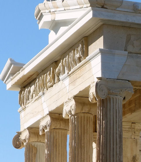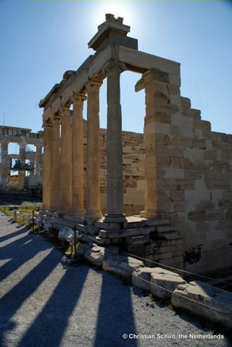 De zuilen van de Nikè-tempel zijn in een nieuwe bouworde: de