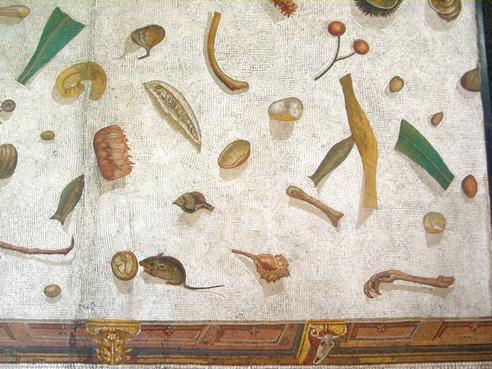 In het vloermozaiek van de “niet geveegde vloer”wordt diepte