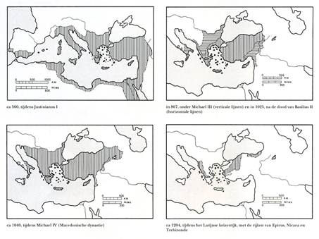 Tijdens het Latijnse keizerrijk (kaartje rechtsonder) werd de 4e kruistocht georganiseerd. In 1204 veroverden de Venetianen Constantinopel. Zij namen de macht over in het Byzantijnse Rijk. Vanaf dat moment zitten er Europeanen op de troon.