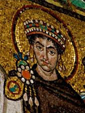 Belisarius. De figuur van de keizer komt in dit mozaïek duidelijk naar voren,