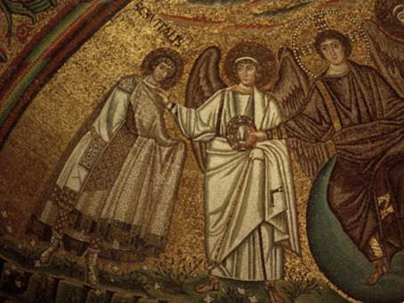 Beide mozaïeken hebben een gouden achtergrond. Goud staat symbool voor het