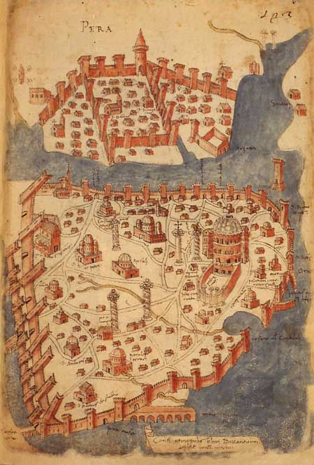 Dit is een afbeelding uit een Westerse bron over de verovering van Constantinopel door de Osmanen in 1453. De Westerse wereld zag deze gebeurtenis als de Apocalyps: het einde der tijden.