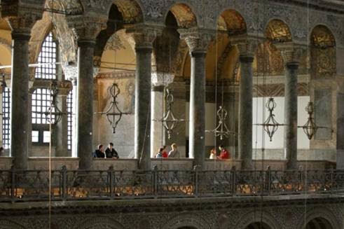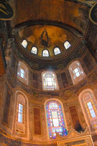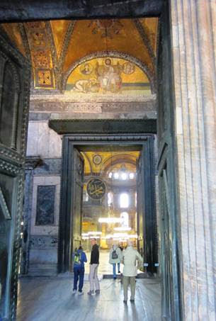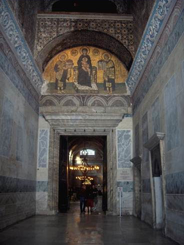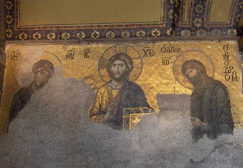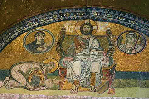 Het 3e mozaïek in de bovengalerij is de afbeelding van Christus Pantocrator met aan weerszijden keizer Constantijn en keizerin Zoë.