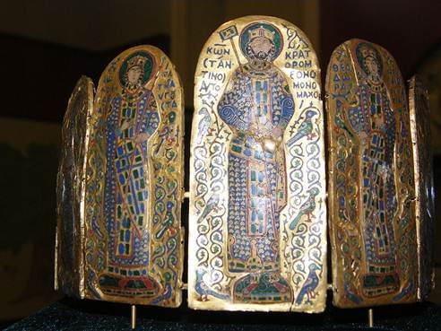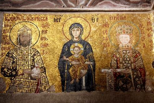 rechts van haar Keizer Johannes II Komnemos en links Keizerin Irene. In dit