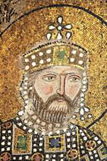 keizer is een aureool te zien. In de Byzantijnse kunst wordt de wereldlijke