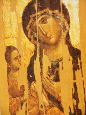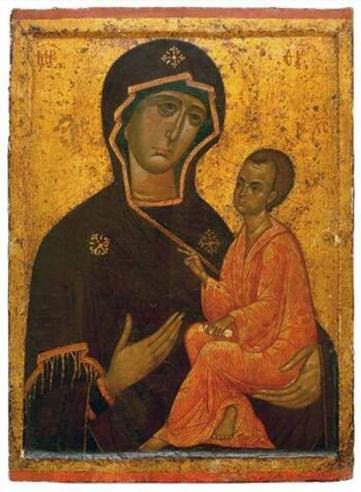 ikoonafbeelding. Hodegetria (=Hij die de weg wijst). Het verhaal gaat dat