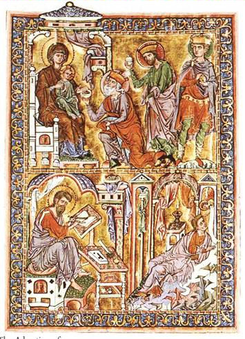 Miniatuurschilderkunst is vanaf de 10e eeuw ook in West-Europa bekend geworden, doordat Byzantijnse prinsessen trouwden met Ottoonse koningen. De kunstwerken werden door Ottoonse kunstenaars nagemaakt. Fig. 22 is geen Byzantijnse kunst maar Europees. De afbeelding is levendig en niet statisch als in de Byzantijnse kunst. De drie magiërs in de bovenste helft van de miniatuur hebben gekleurde aureolen rond hun hoofd. Dit is een kenmerk, dat bij Byzantijnse schilders nooit zou voorkomen.