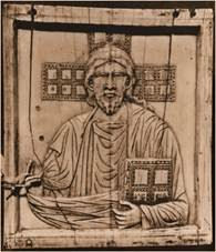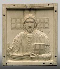 Ook in dit ivoren paneeltje is Christus geen kleuter, maar