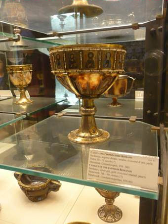 Tijdens de 4e kruistocht plunderden de Venetianen de kerken van Constantinopel en brachten de kostbaarheden naar Venetië. In de schatkamer van de San Marco staan verschillende pateenschalen en miskelken uit de Byzantijnse tijd.