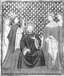 ook uitbeelden als heerser. In zijn rechterhand heeft hij mogelijk een zwaard