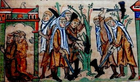 Het ORA ET LABORA wordt in een miniatuur uit een manuscript van de University Library in Cambridge goed uitgebeeld. In de kloostertuin zijn monniken samen bomen aan het kappen, terwijl hun broeders binnen de muren in gebed verzonken zijn.
